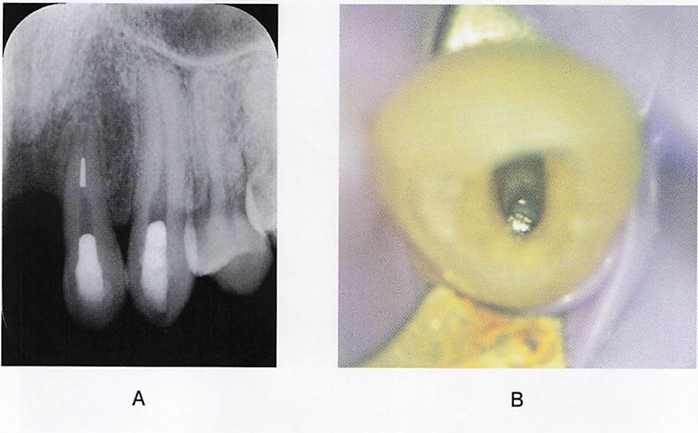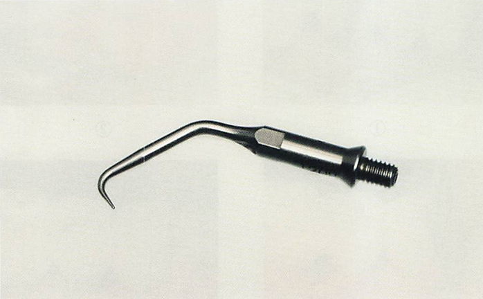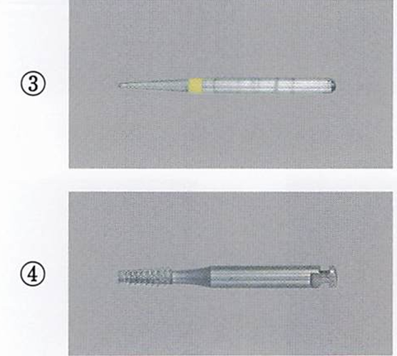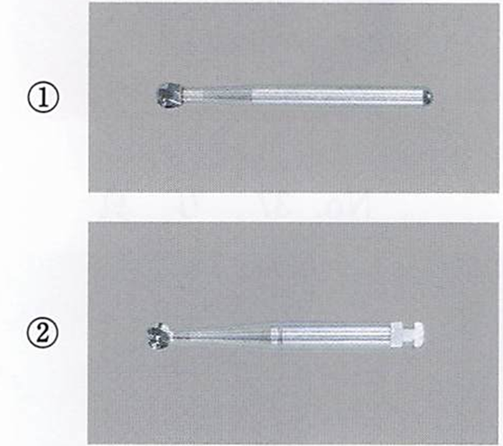 60歳の男性。上顎左側第一大臼歯が水にしみることを主訴として来院した。10年前に修復処置を受けたという。コンポジットレジン修復を行うことになった。初診時の口腔内写真(A)、エックス線画像(B)および回転切削器具の写真を別に示す。 最初に使用するのはどれか。1つ選べ。