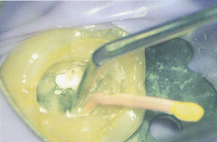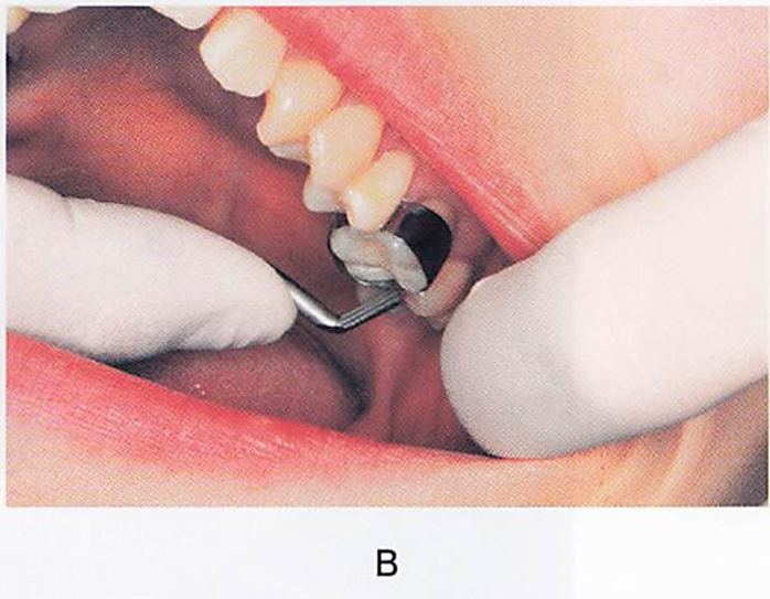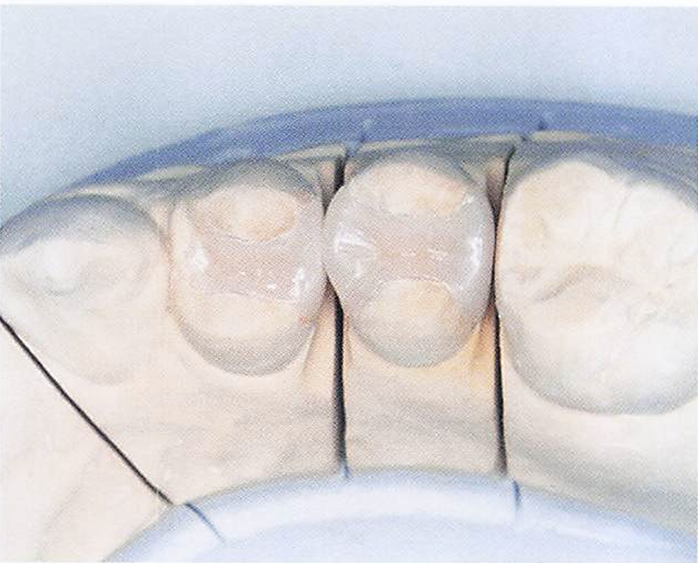 22歳の男性。上顎左側小臼歯部の一過性の冷水痛を主訴として来院した。 診察の結果、間接修復を行うことになった。完成した修復物の写真を別に示す。接着前の修復物に行う処理はどれか。2つ選べ。