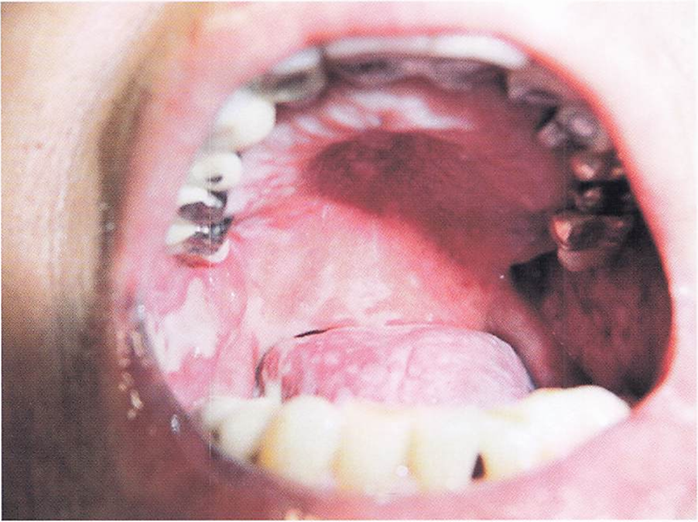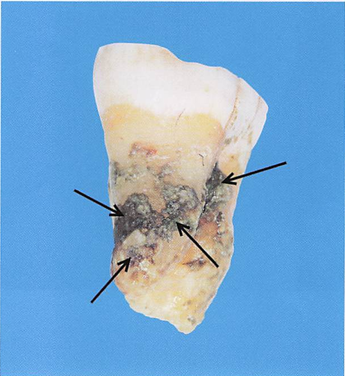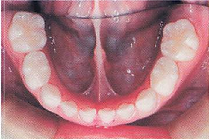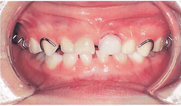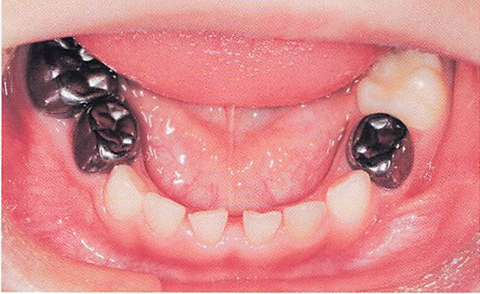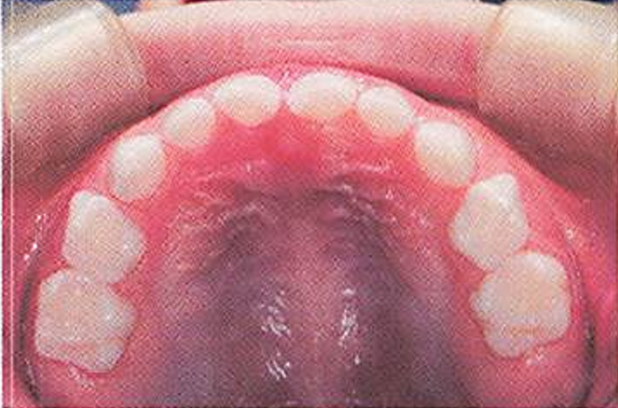 8歳の女児。定期歯科健康診査で来院した。口腔内写真(別冊午後 No.36)を別に示す。 口腔内でみられるのはどれか。2つ選べ。