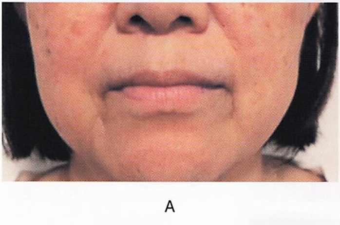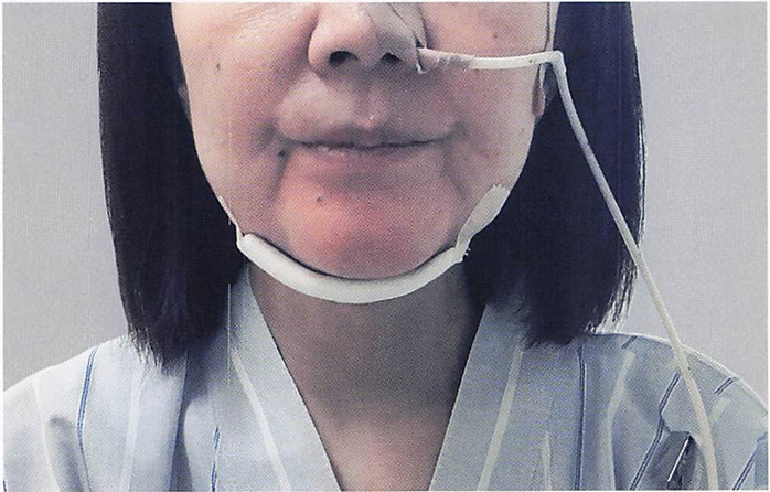 口腔機能の訓練の写真を別に示す。この訓練で改善きれるのはどれか。1つ選べ。