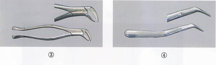 25歳の女性。下顎左側大臼歯部の痛みと咀噸困難を主訴として来院した。 口腔内写真および鉗子の写真を別に示す。 矢印で示す歯の抜去の準備を歯科医師から指示きれた。 準備する鉗子はどれか。1つ選べ。