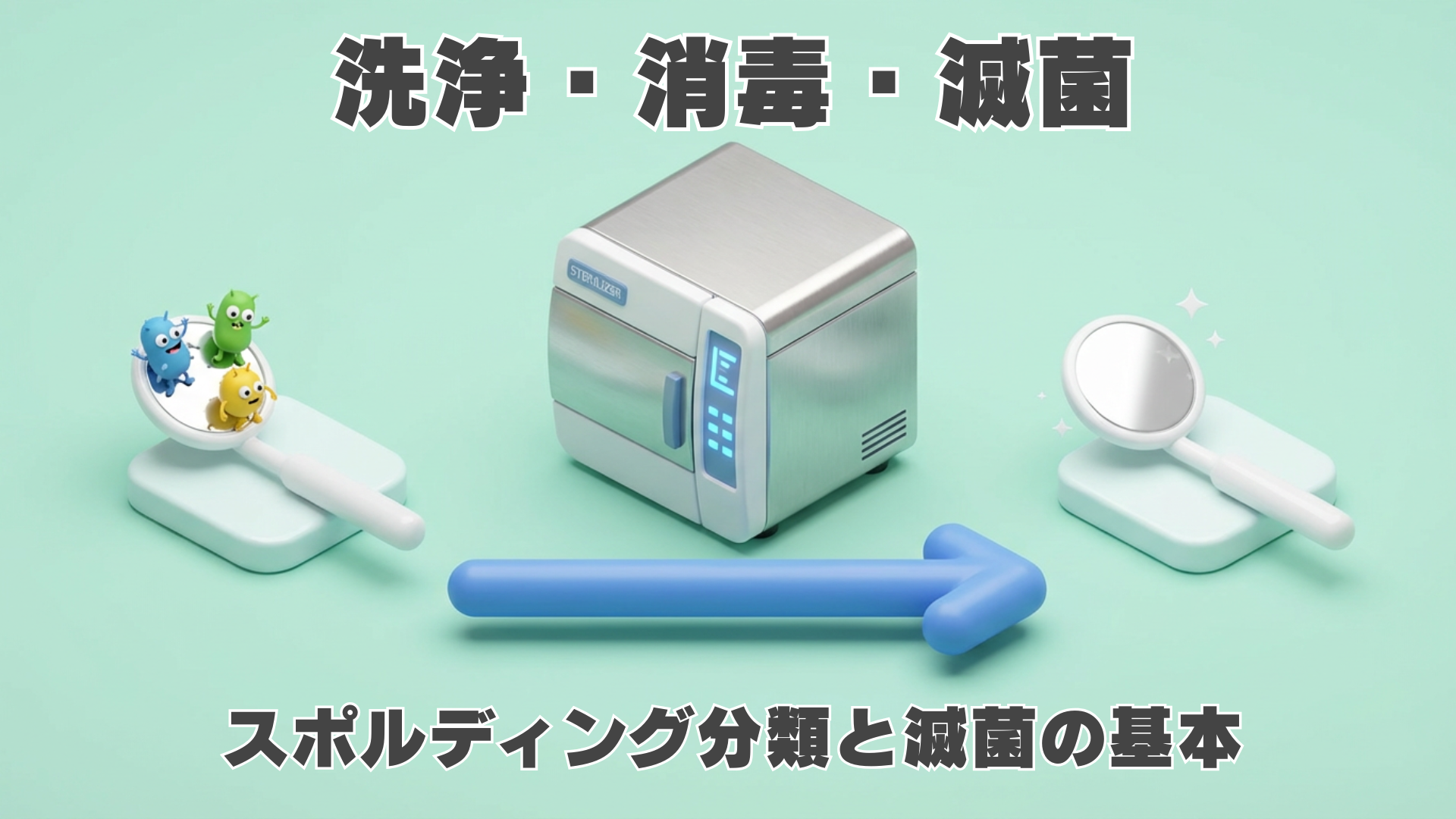 | セミクリティカル (中危険度) | 粘膜や傷のある皮膚 | 滅菌 または高水準消毒 | ミラー、ピンセット、印象用トレー、ハンドピース |